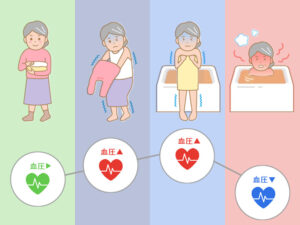 この時期から春先にかけて特に注意が必要なのが、「ヒートショック」とそれに伴う急激な血圧変動です。