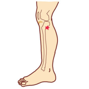 場所: 膝の内側。すねの骨の内側を、下から上に指でなぞり上げた時に、骨の真下で指が止まる凹んだ場所。