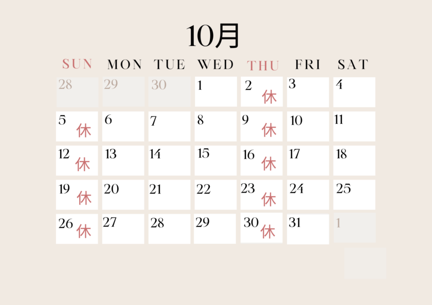 10月の診療スケジュール! 2025/09/26 お知らせ 未分類 こんにちは!神門鍼灸整骨院 甲東園です☆ 10月の診療スケジュールです! 宜しくお願い致します♪ ご来院お待ちしております♪  …..